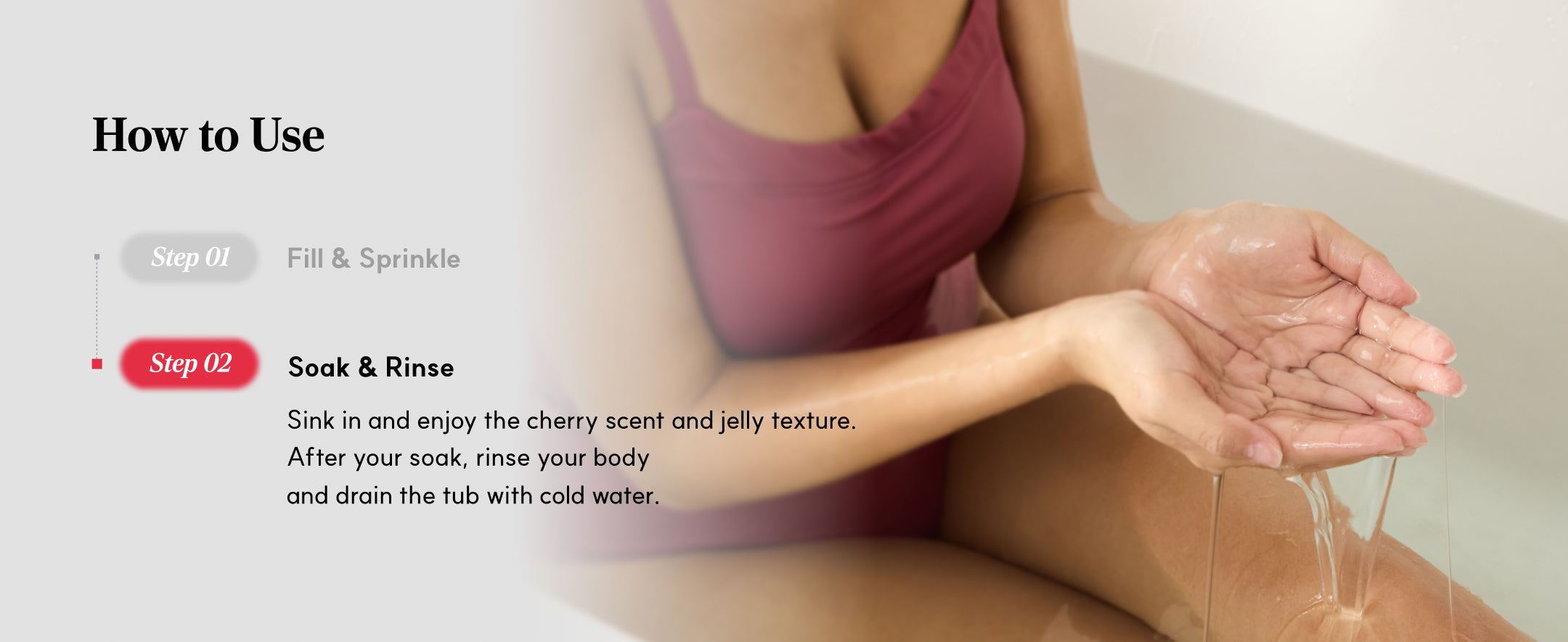 Cherry powder that turns water into a soothing jelly bath for self-care or romance.